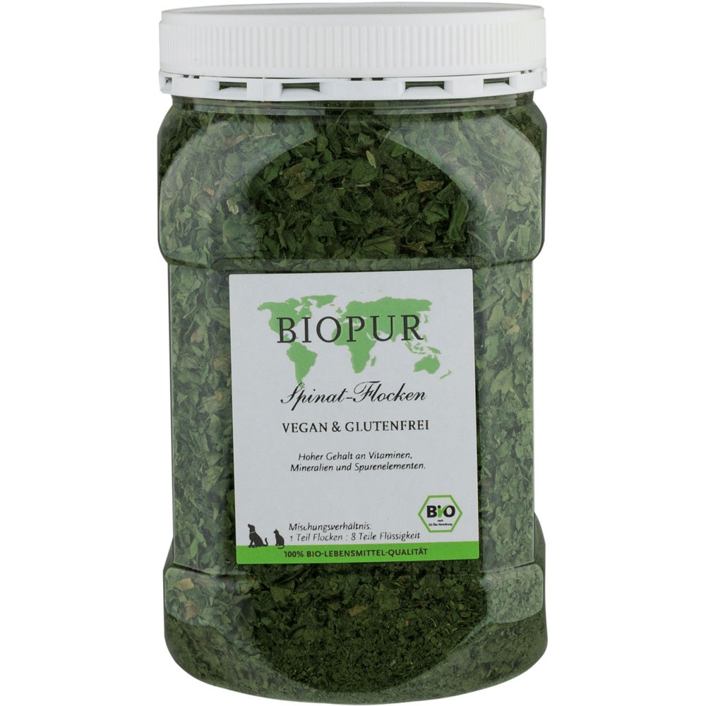 Bio Spinatflocken 70g Klarsichtbox Hund Gemüse Biopur